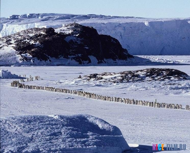 Тысячи императорских пингвинов покидают надежную глубину океана, выходят на холодную землю и начинают свое долгое путешествие вглубь настолько сурового и морозного континента, что там нет никакой жизни.